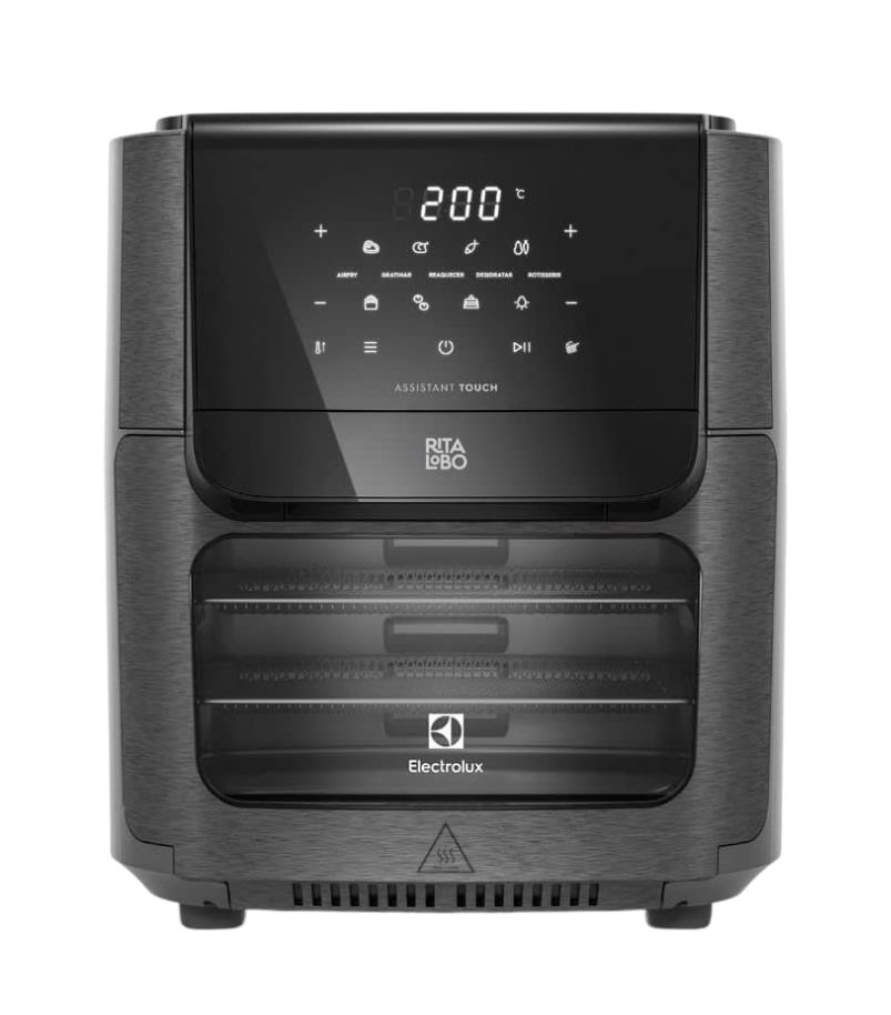 Além de fritar sem óleo, o aparelho assa e cozinha com resultados bem próximos aos do forno tradicional. Por isso, o painel digital com funções prontas e o conjunto de assadeiras facilitam desde receitas rápidas até pratos maiores, como carnes, pizzas e bolos, mantendo a textura crocante por fora e macia por dentro.