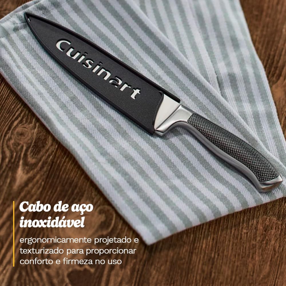 A Faca do Chef Cuisinart da Coleção Graphix é uma ferramenta multiuso com lâmina de 20cm desenvolvida em aço inoxidável de alto teor de carbono, garantindo precisão e exatidão nos cortes.