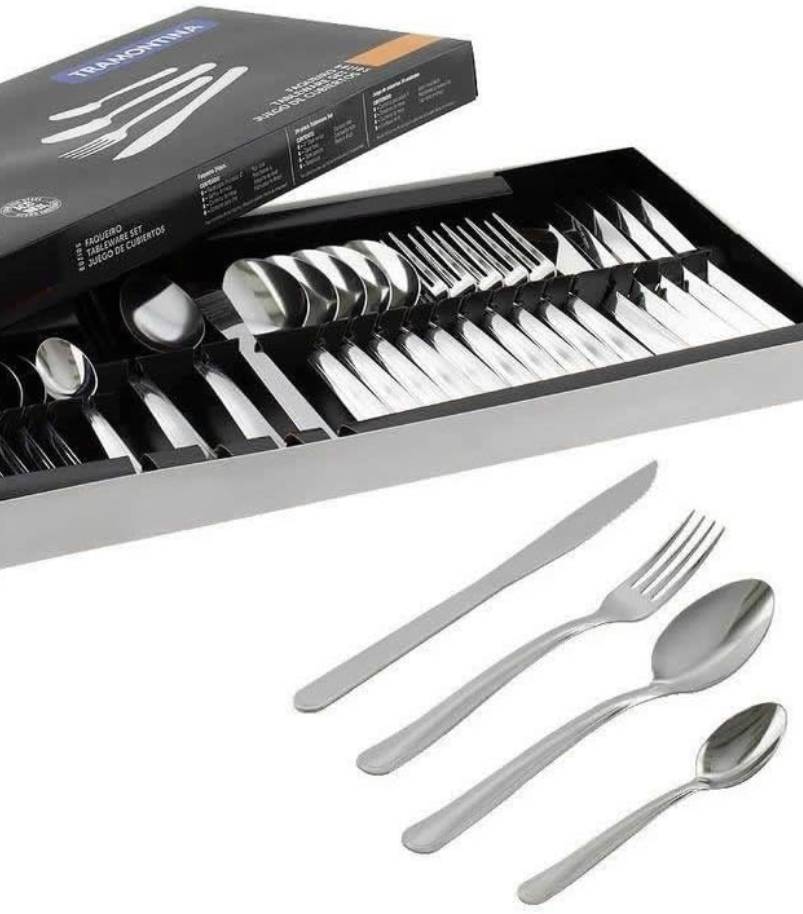 - Além disso, a estampagem e a espessura dos garfos e colheres garantem maior firmeza durante o uso, enquanto o tratamento térmico nas lâminas das facas proporciona maior durabilidade do fio.
